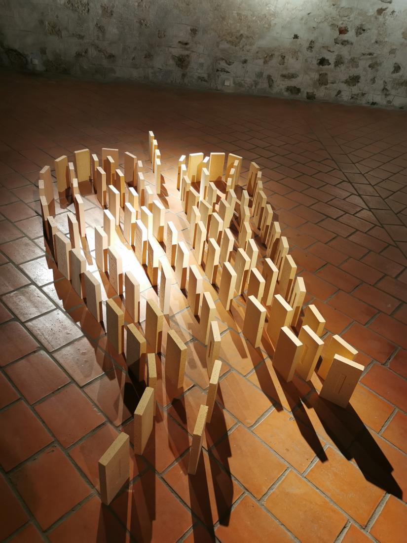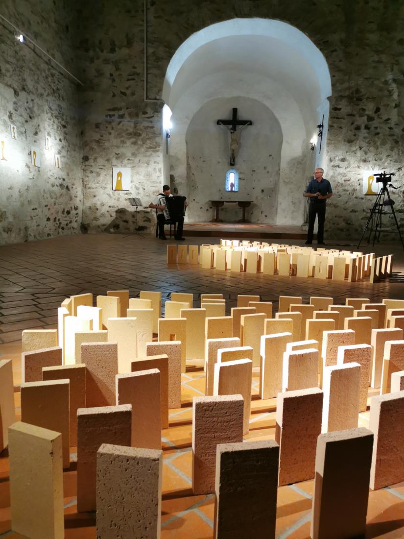 Prvič se je predstavila v istem ambientu leta 2008, potem je v tej cerkvi razstavljala še leta 2016 in 2018, vsakič z drugačno tematiko. Tokrat je na ogled postavila likovna dela angelov v različnih oblikah ter tri inštalacije in sicer angela in oltar iz šamotne opeke ter križev pot iz klinker opeke. Strokovno oceni k razstavi je podala višja kustosinja Koroškega pokrajinskega muzeja Aleksandra Čas, za odličen glasbeni pridih k dogodku pa je poskrbel Benjamin Merzdovnik na klasični harmoniki. Razstava bo odprta v delovnem času Infopisarne vse do konca septembra.